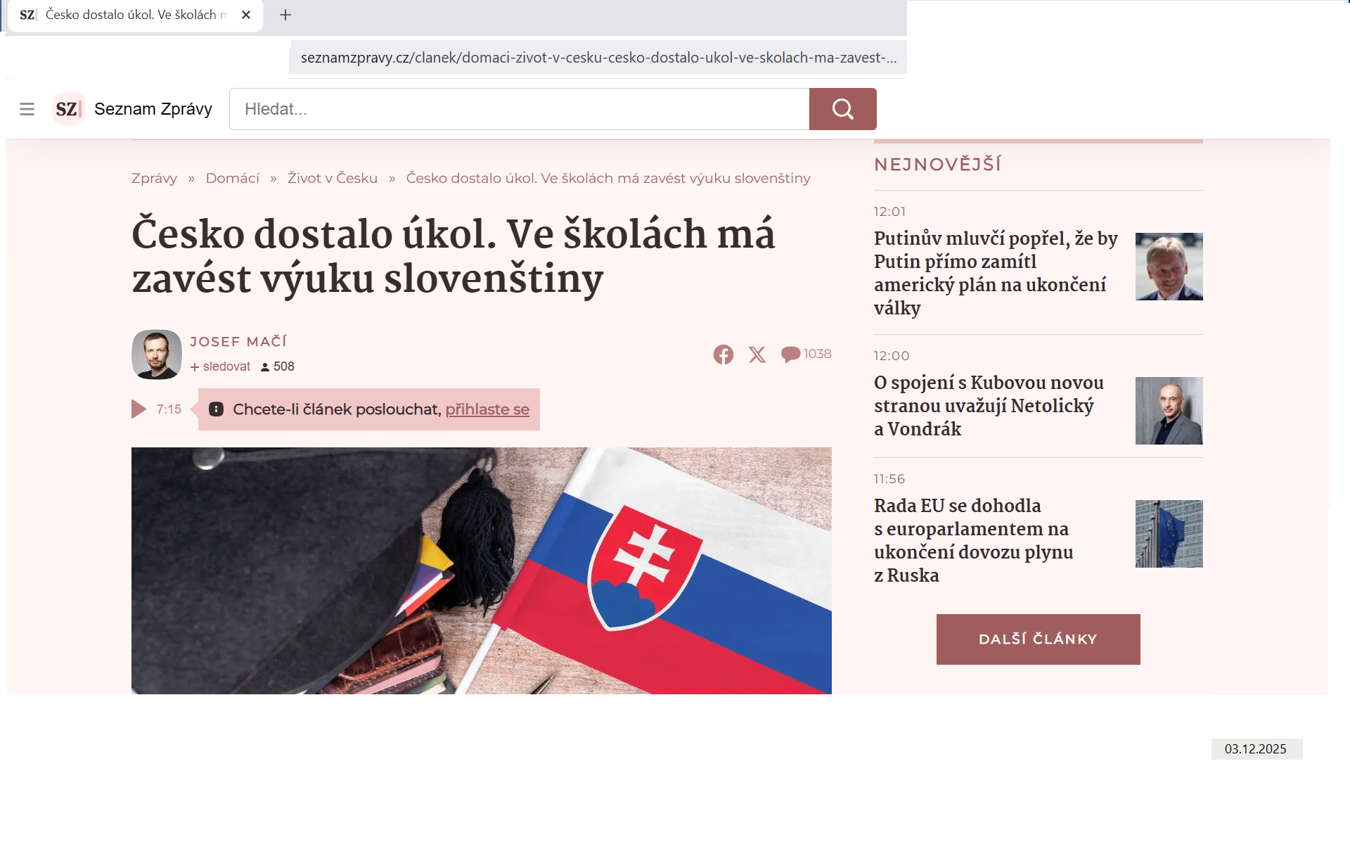 Táto informácia bola uverejnená 3.12.2025 v tomto článku: