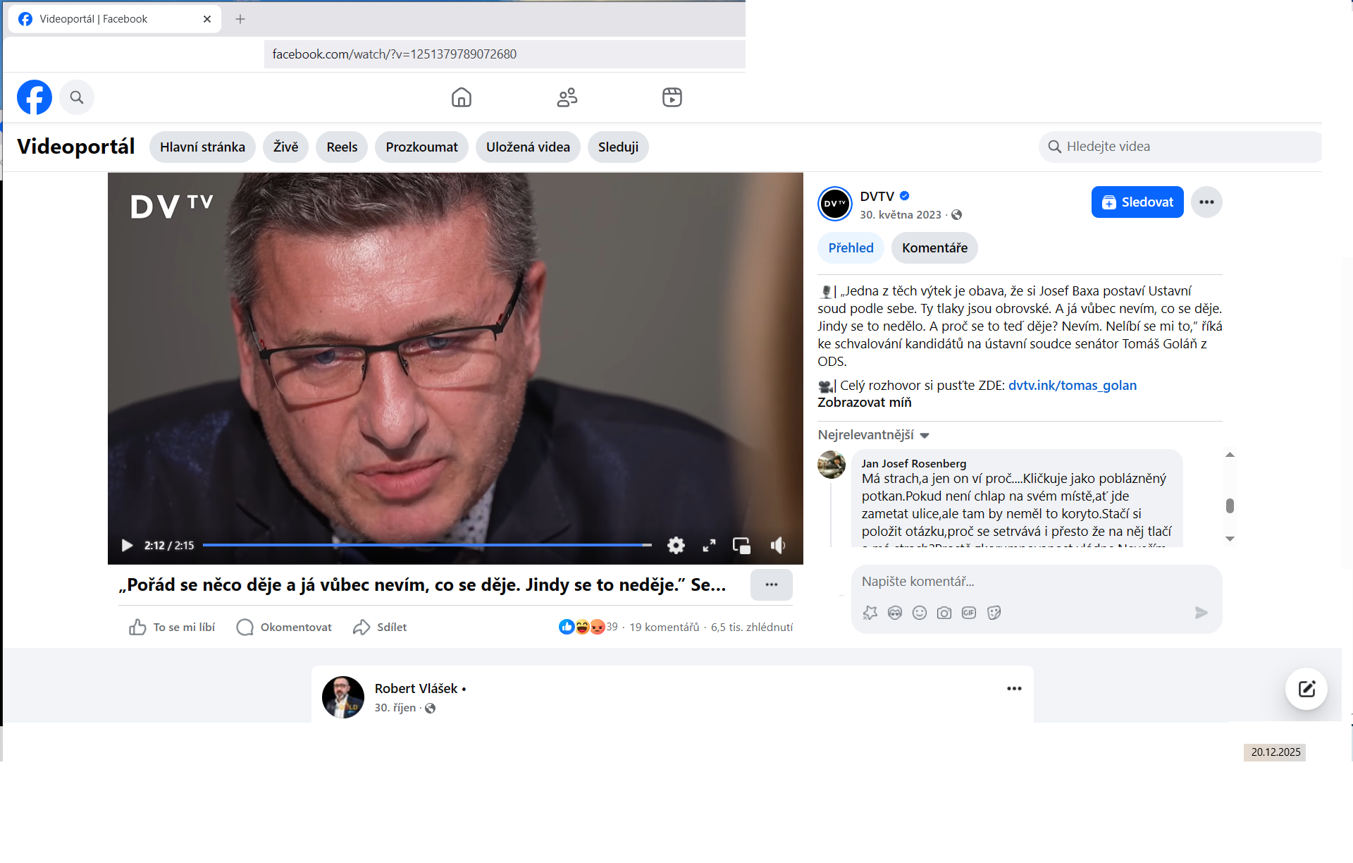 Tady je odkaz na rozhovor z roku 2023 se senátorem Tomášem Goláňem za ODS, kde mluví o tlacích před volbou Baxu za ústavního soudce. V tom rozhovoru je vidět, že se bojí, ale neřekl v tom krátkém úryvku koho a proč (dvtv je už placený kanál, nemám ho předplacený a já jsem vycházela jenom z krátkého úryvku rozhovoru na youtube)