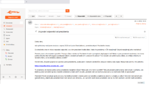 Tady je odpověď z Pražského hradu z roku 2023, že můj mail dostali a Lucie Obdržálková ho přeposlala na vnitropolitický odbor. Škoda, že mi nedala do kopie, komu to přeposlala.
