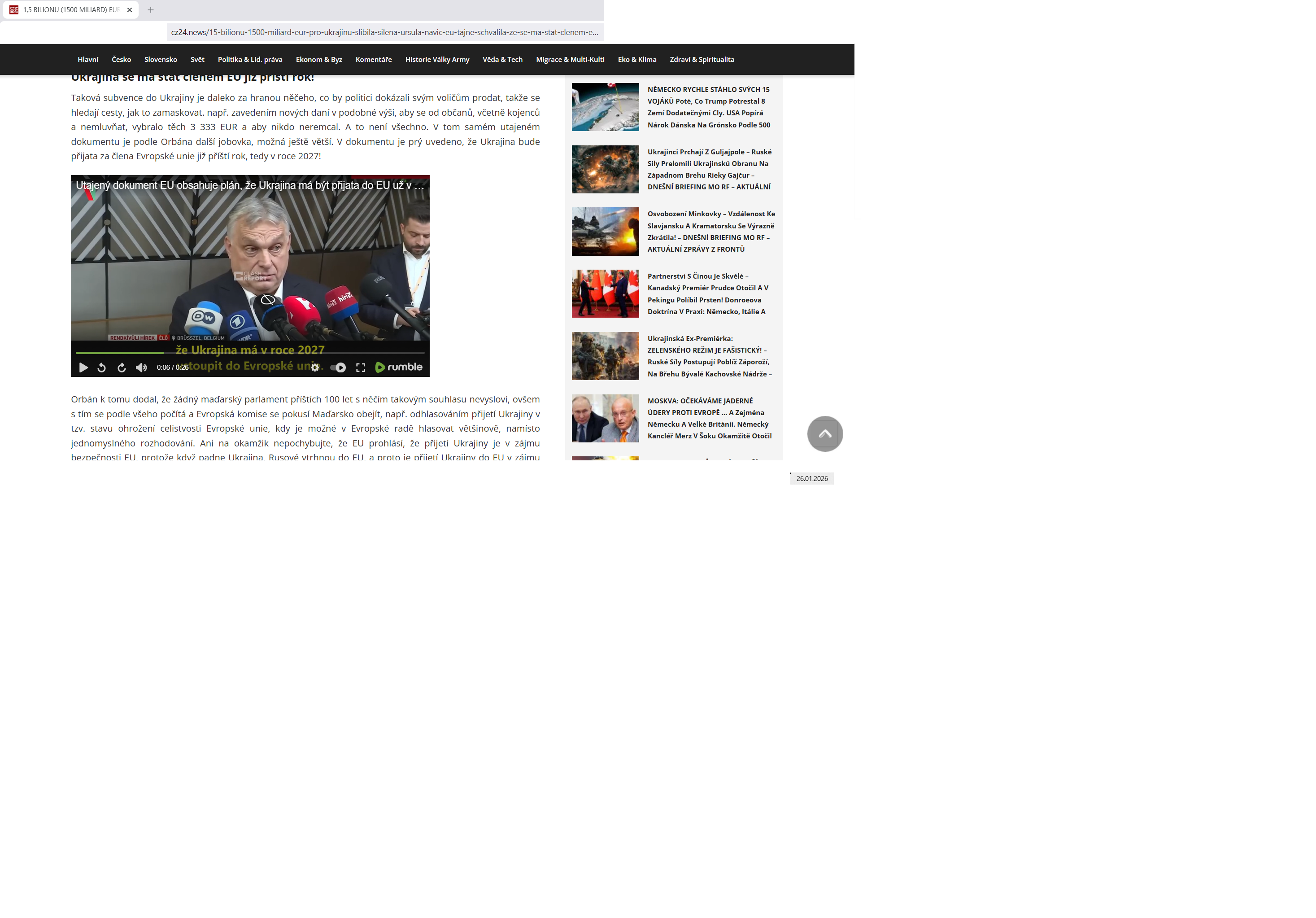 Evropská unie tajně schválila Ukrajině 1,5 bilionu EUR na příštích 10 let a navíc se má Ukrajina stát členem EU již příští rok! Viktor Orbán odpálil bombu z utajeného dokumentu ze stolu šéfky Evropské komise! 800 miliard EUR na ukrajinské mandatorní výdaje a důchody a dalších 700 miliard EUR na zbrojení, obojí rozpočítáno na 10 let! A v Kremlu se 4 hodiny porcovala kromě Ukrajiny i Arktida!